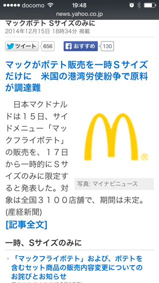 このニュースをみてマックのポテトが